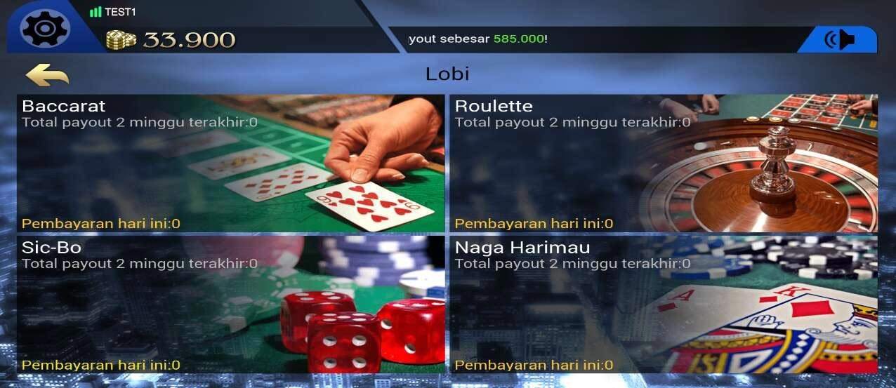 3. Setelah anda login, anda akan menuju tampilan lobby game. Disini anda bisa memilih jenis permainan dan juga bisa memilih tempat permainan.